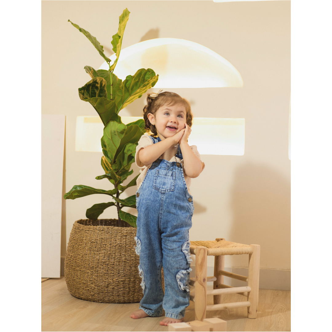 Esta hermosa braga dos piezas combina la resistencia del jean con la suavidad del algodón, decorada con un delicado bordado en forma de corazón. Ideal para las salidas al parque, ofrece comodidad y estilo para que los más pequeños disfruten cada momento con ternura y libertad.