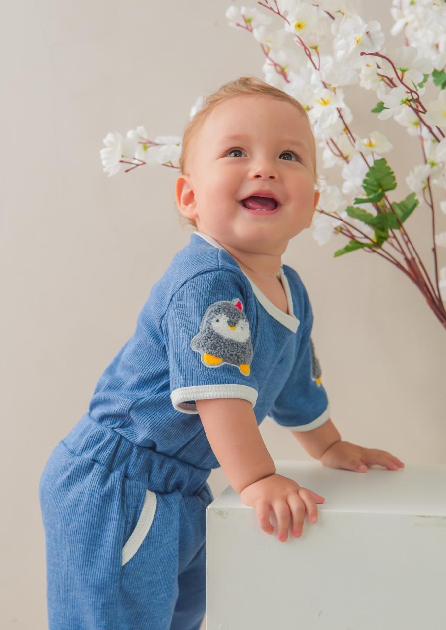 Hermoso conjunto BALOO es perfecto para tu peque. Hecho con algodón suave, incluye una camisa con un aplique tierno de osito o pingüino bordado y un short con bolsillos para los días calurosos. ¡Haz que tu peque se vea adorable y cómodo al mismo tiempo!