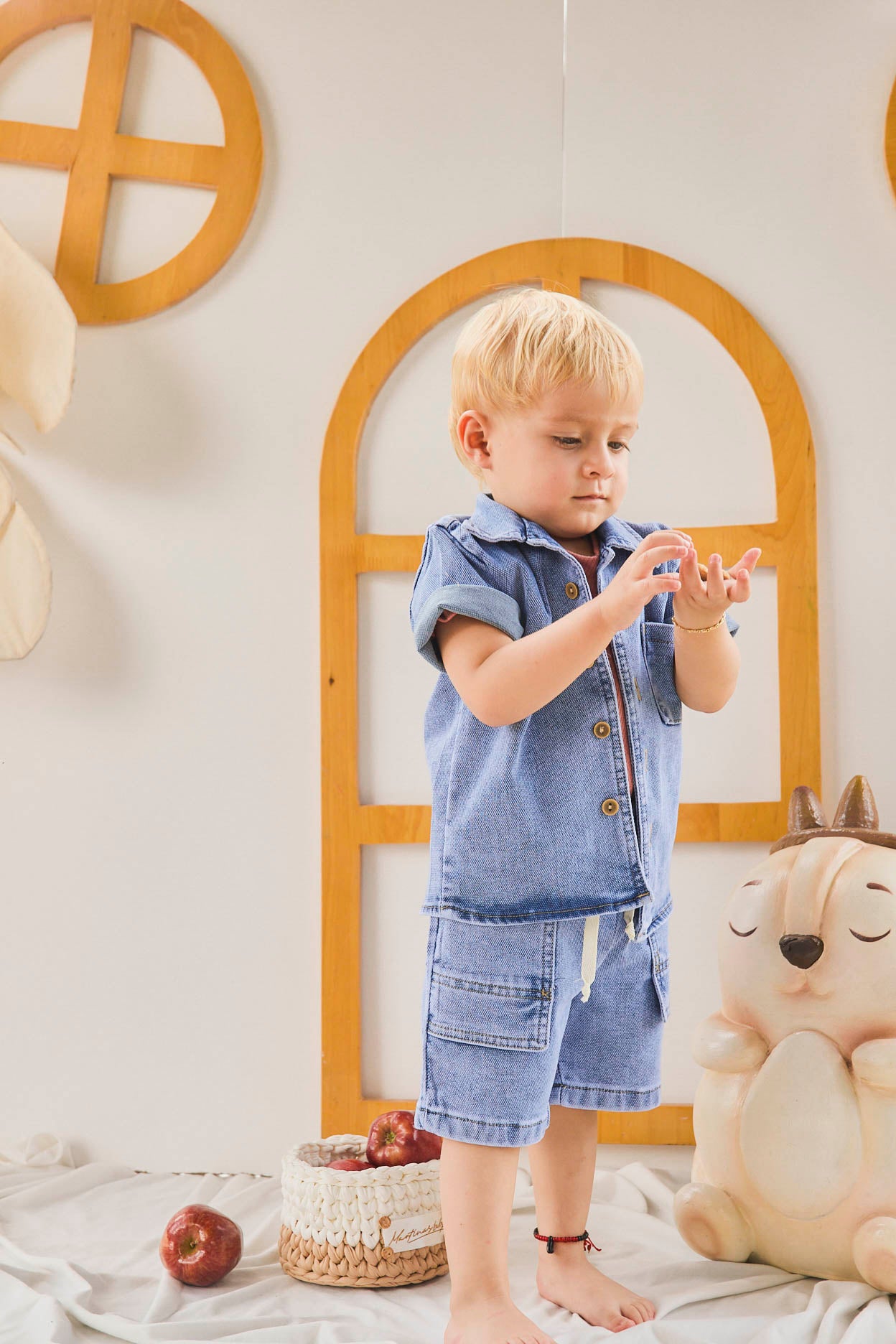 Este conjunto Blue para niño combina comodidad y estilo. Está elaborado con tela tipo denim jean fresca, ideal para el día a día. Incluye una camisa con botones, una camiseta en algodón de tela fría para mayor suavidad y una bermudita tipo cargo que permite libertad de movimiento. Perfecto para que los más pequeños disfruten cada momento con frescura y comodidad y sobre todo con mucho estilo.