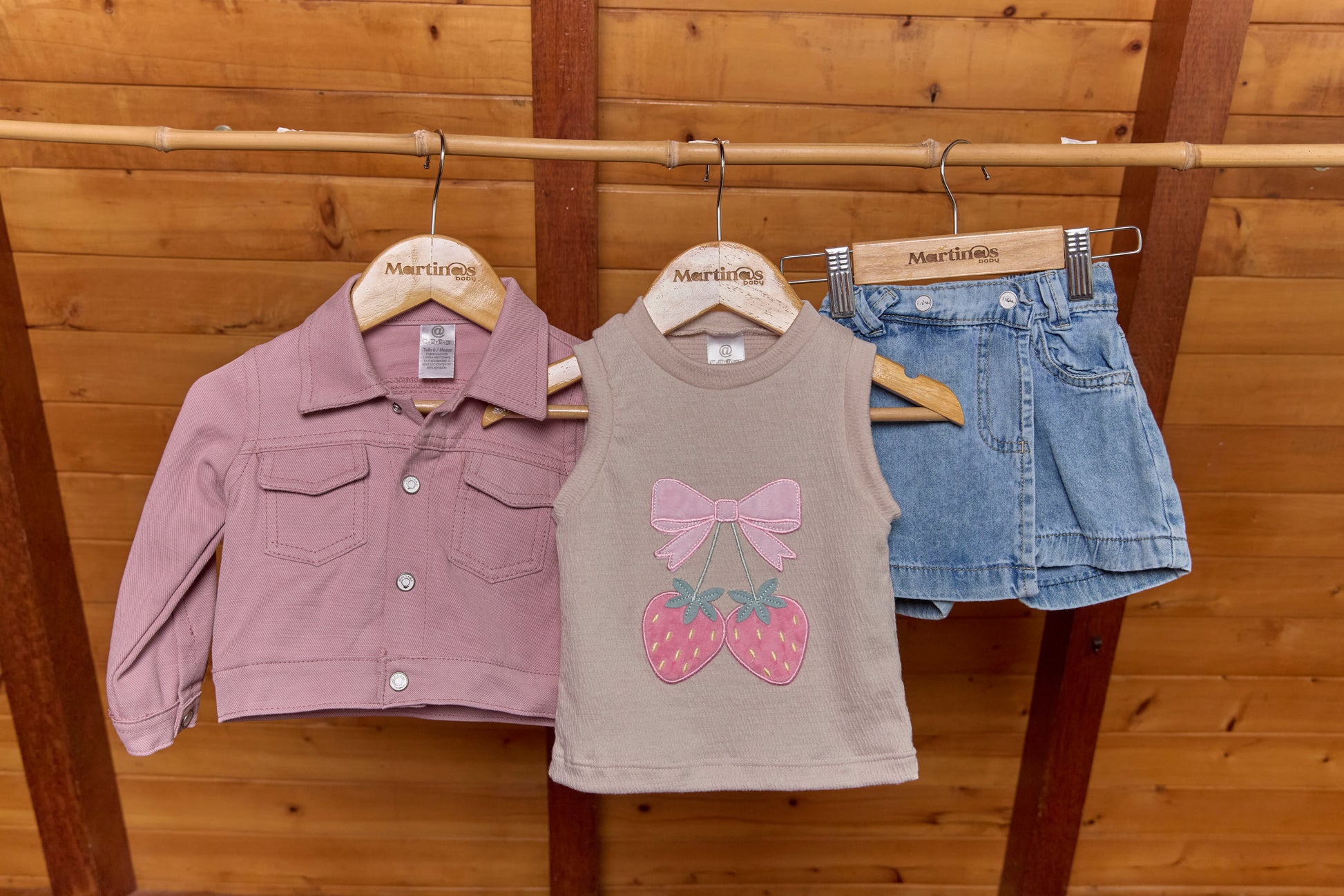 Conjunto perfecto para tu niña con un estilo fresco y cómodo. Incluye una falda-short en jean resistente ideal para el juego y la aventura, una blusa de manga siza suave y versátil, y una chaqueta en dril que protege del clima. Tres piezas coordinadas que se combinan fácilmente para crear diferentes looks. Diseñado con materiales de calidad que acompañan cada momento especial de la infancia.
