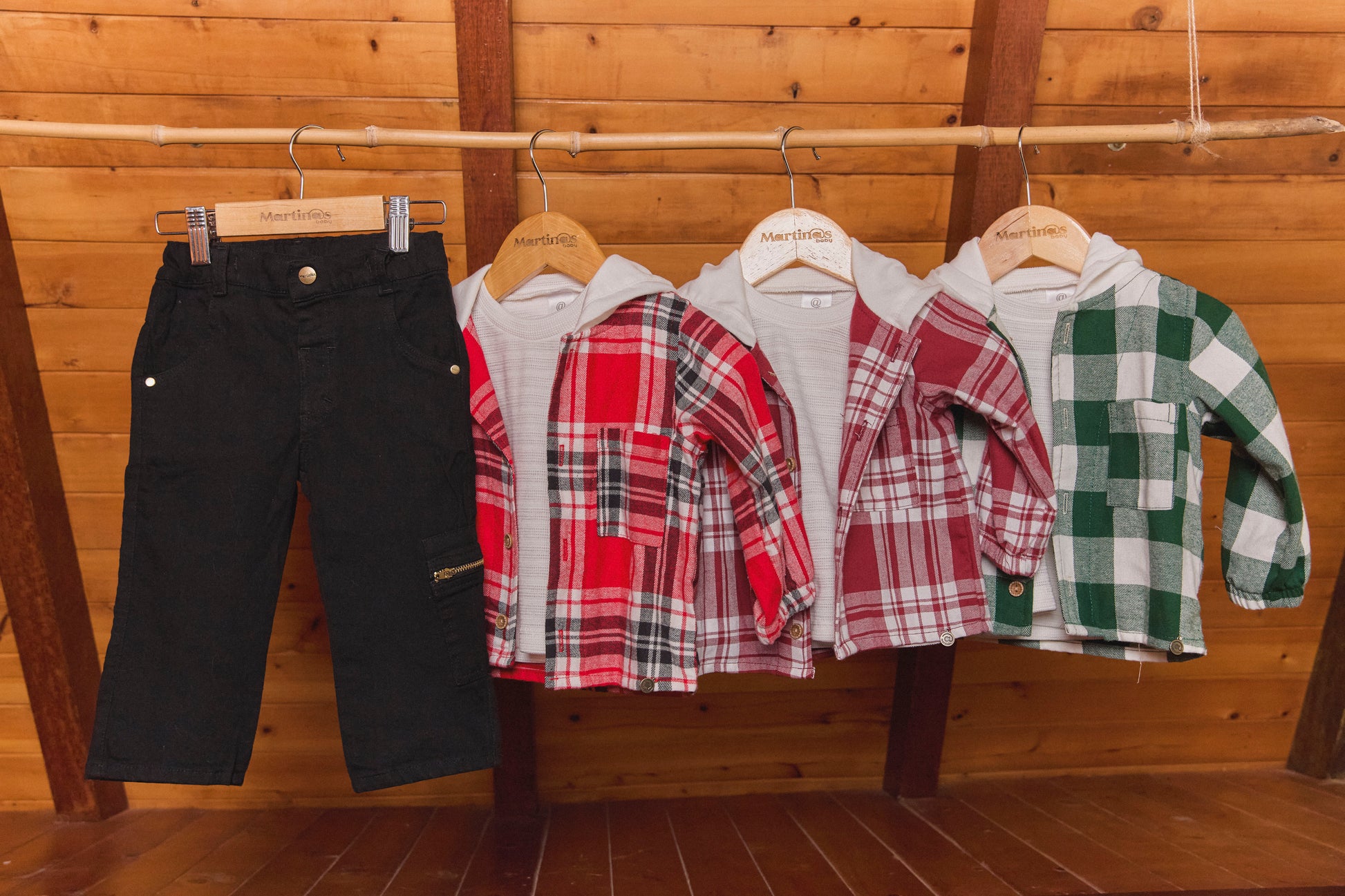 Conjunto leñador perfecto para los pequeños aventureros. Incluye pantalón tipo cargo en negro con múltiples bolsillos funcionales, camibuso en cuadros clásicos y camiseta de algodón suave con estampado especial. Diseño cómodo y versátil que combina estilo rústico con practicidad. Ideal para juegos al aire libre y momentos casuales. ¡Preventa disponible!