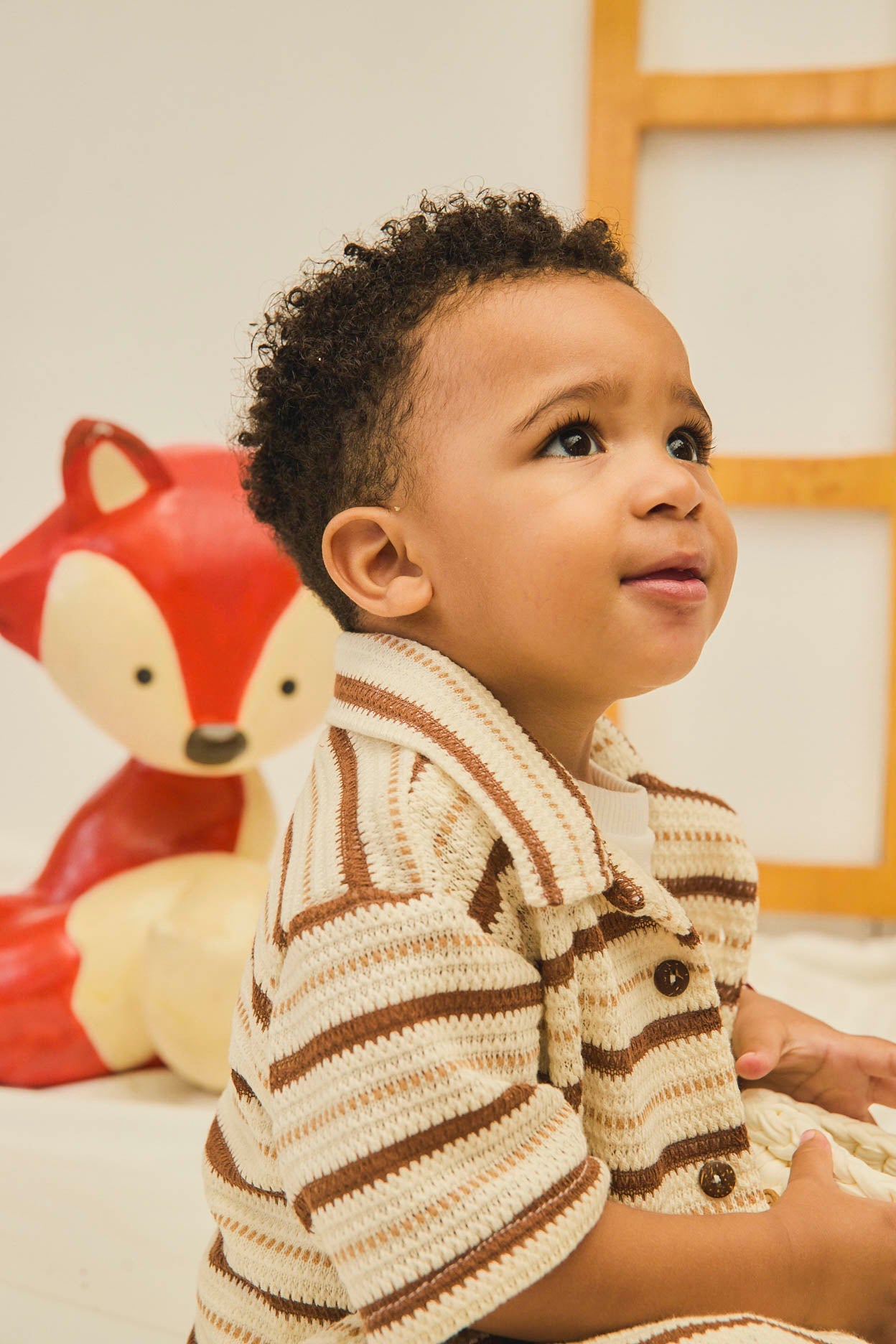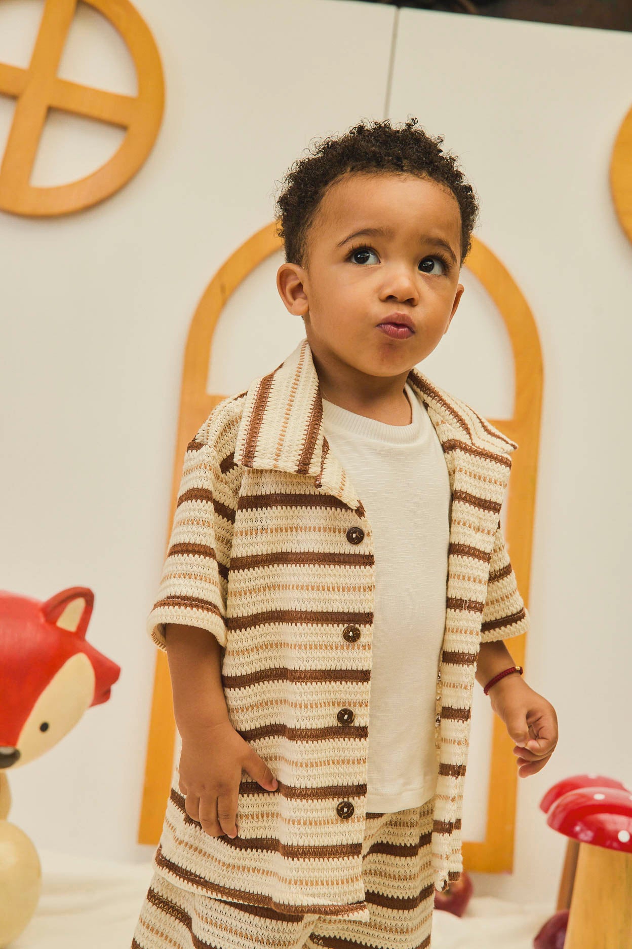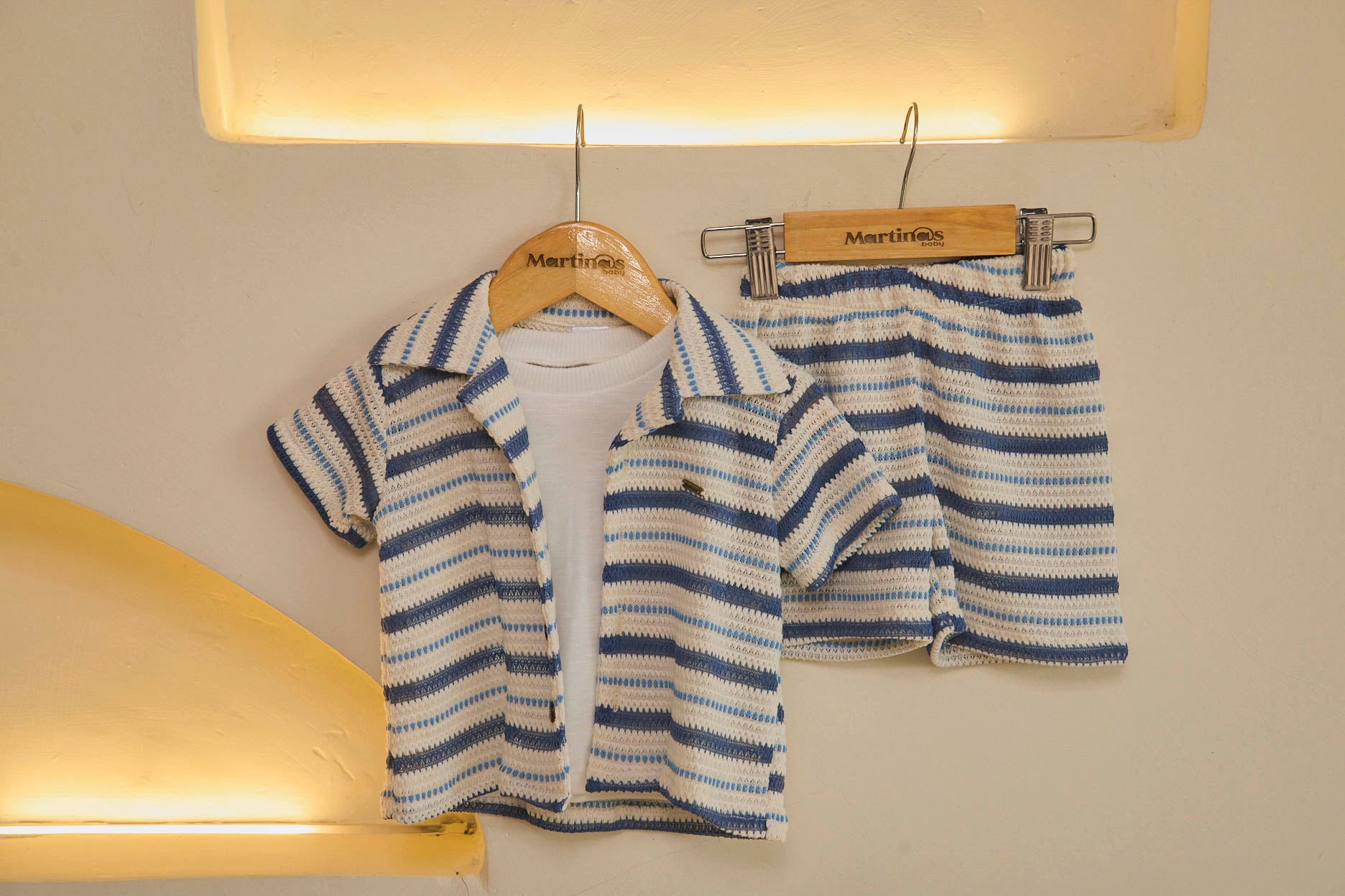 Este adorable conjunto Maty, confeccionado en suave tela tejida con un delicado diseño de rayas, incluye camisa con botones, camiseta y short. Ideal para los días soleados de verano, brinda comodidad y frescura mientras mantiene un estilo encantador y dulce para cualquier ocasión. Perfecto para que los pequeños luzcan cómodos y llenos de ternura bajo el sol.