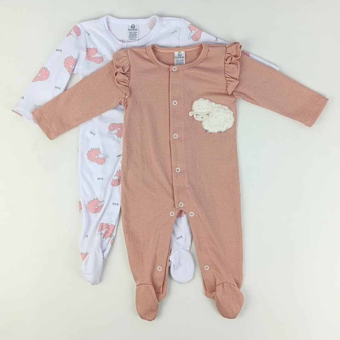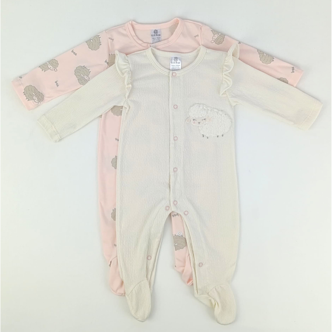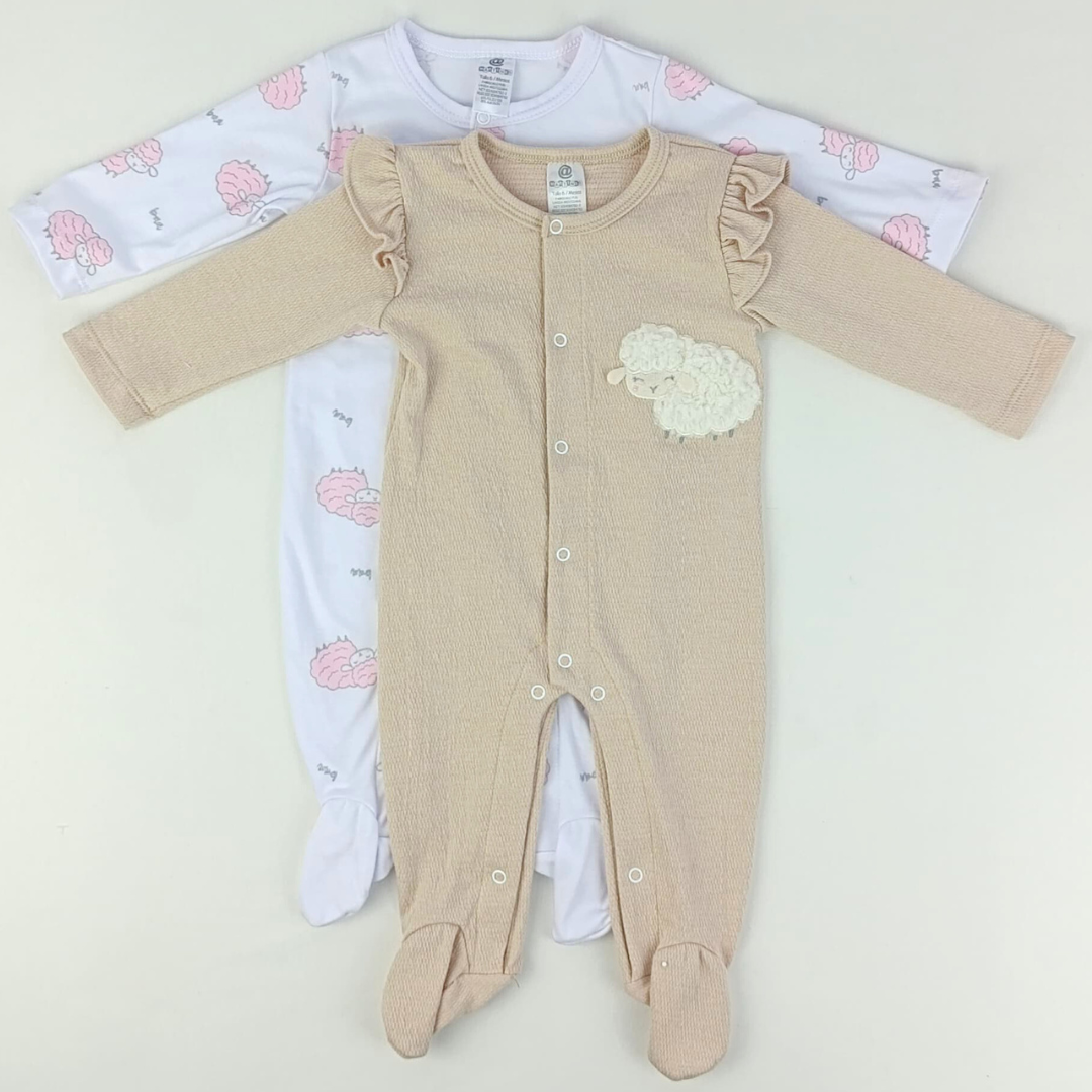 Conjunto de pijamas de dos piezas, ideal para los primeros días de tu peque. Su diseño incluye un delicado bordado de ovejita y un estampado adorable que aporta ternura y comodidad, cuidando la piel sensible de los más pequeños. Perfecto para mantener a tu bebé abrigado y feliz durante sus primeras noches.