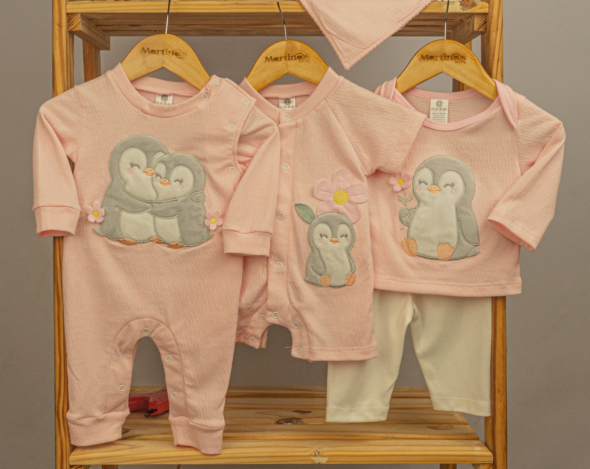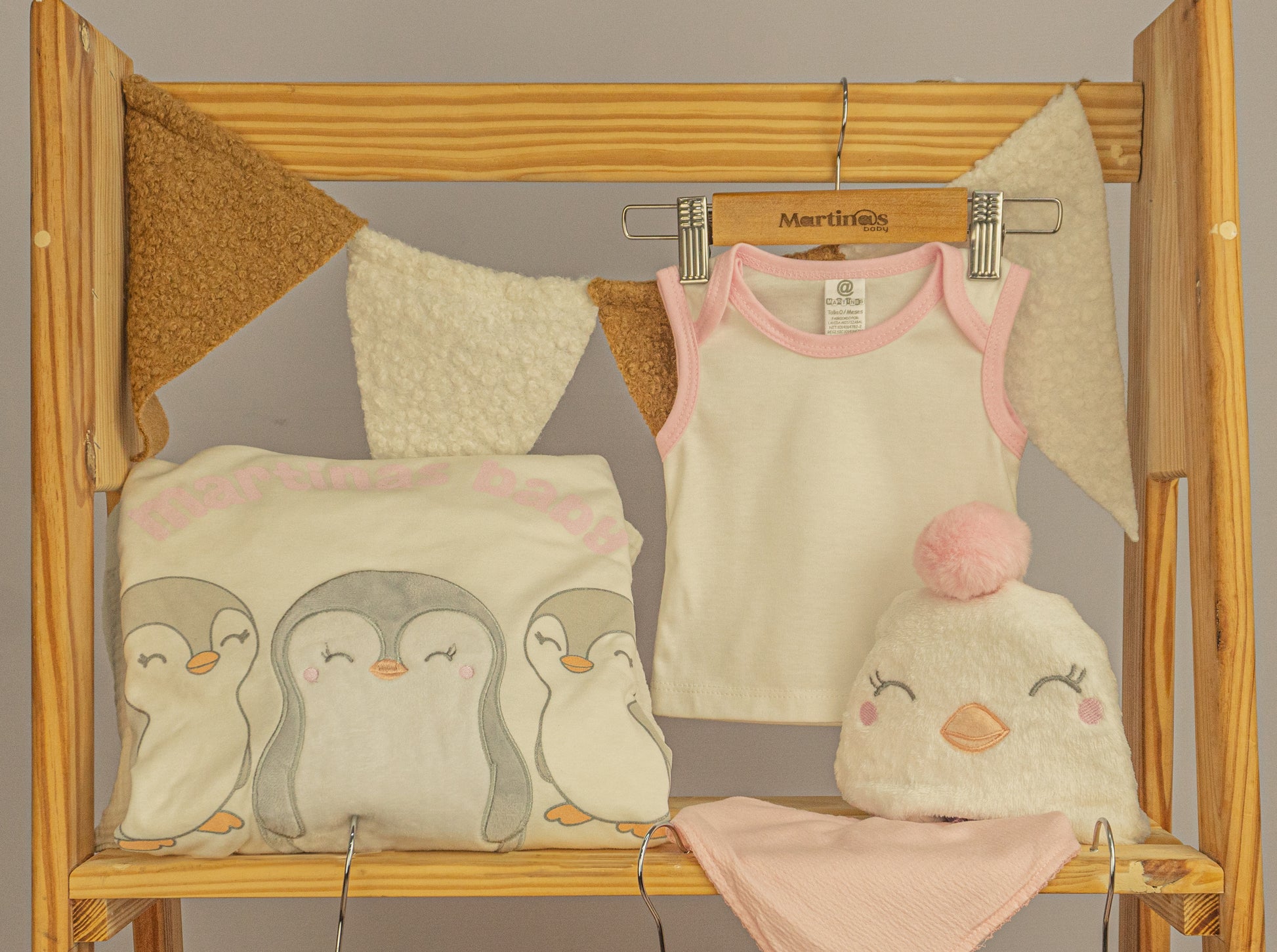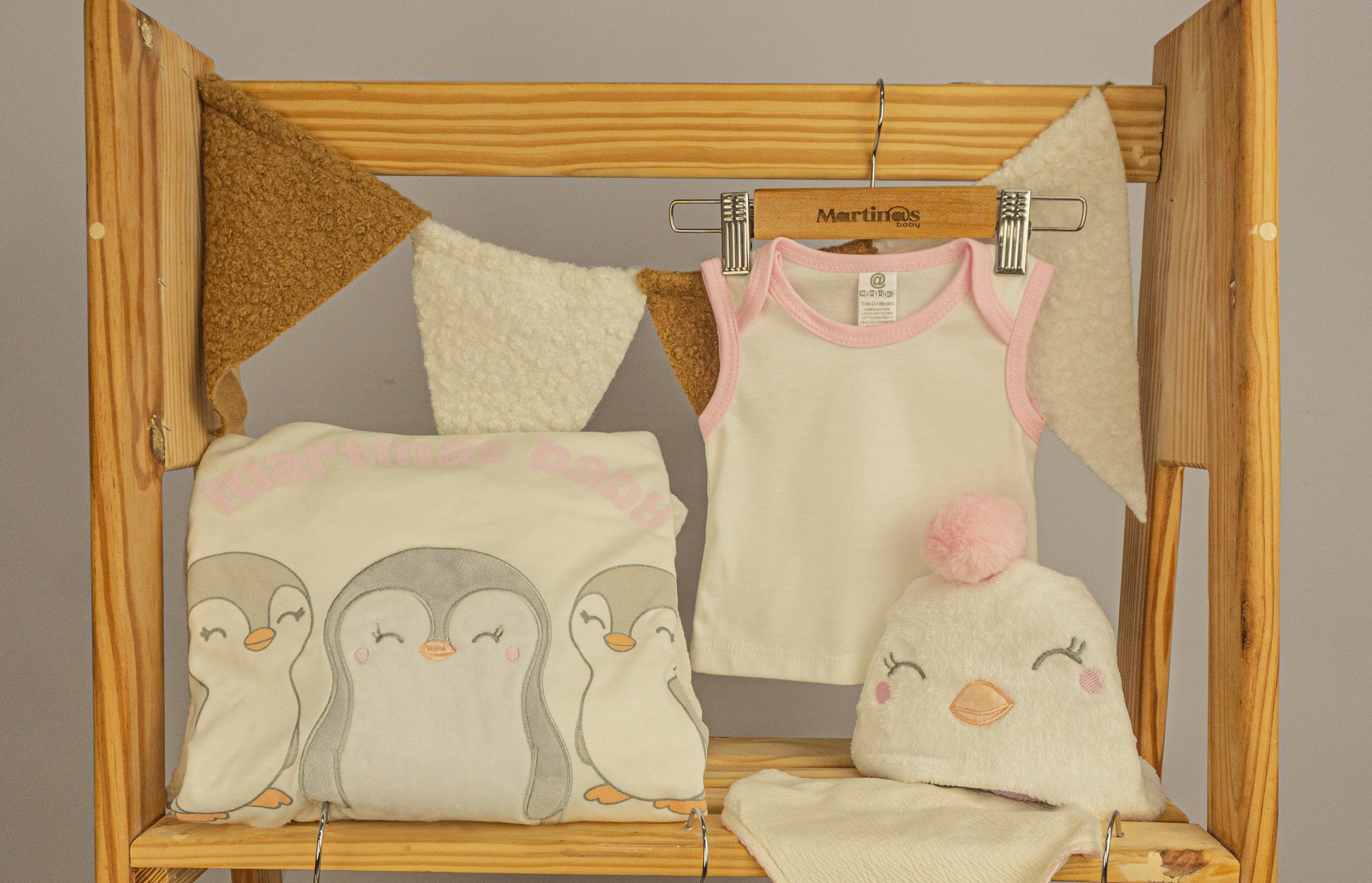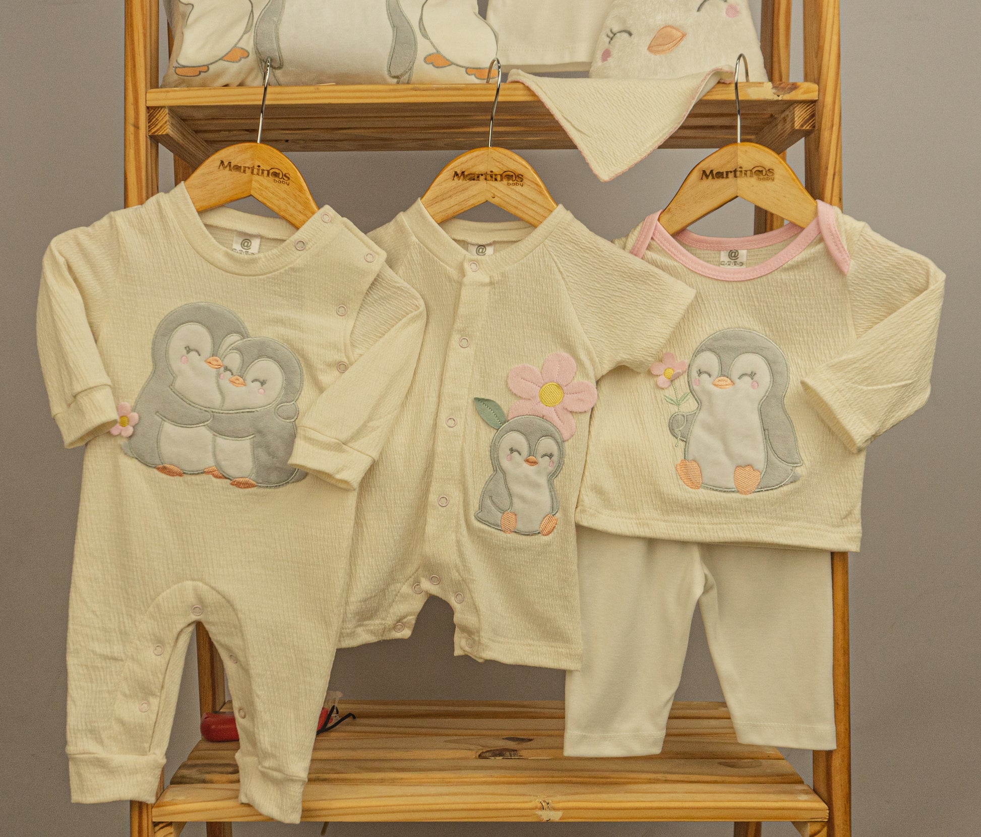 Recibe a tu peque con estilo desde el primer día. Este hermoso set de 8 piezas incluye mameluco, enterizo, buzo, pantalón, cobija, babero, camisilla y gorro, todo en algodón 100% suave y delicado para la piel sensible del recién nacido. Diseñado con la calidez y ternura que merece tu bebé en sus primeros momentos.