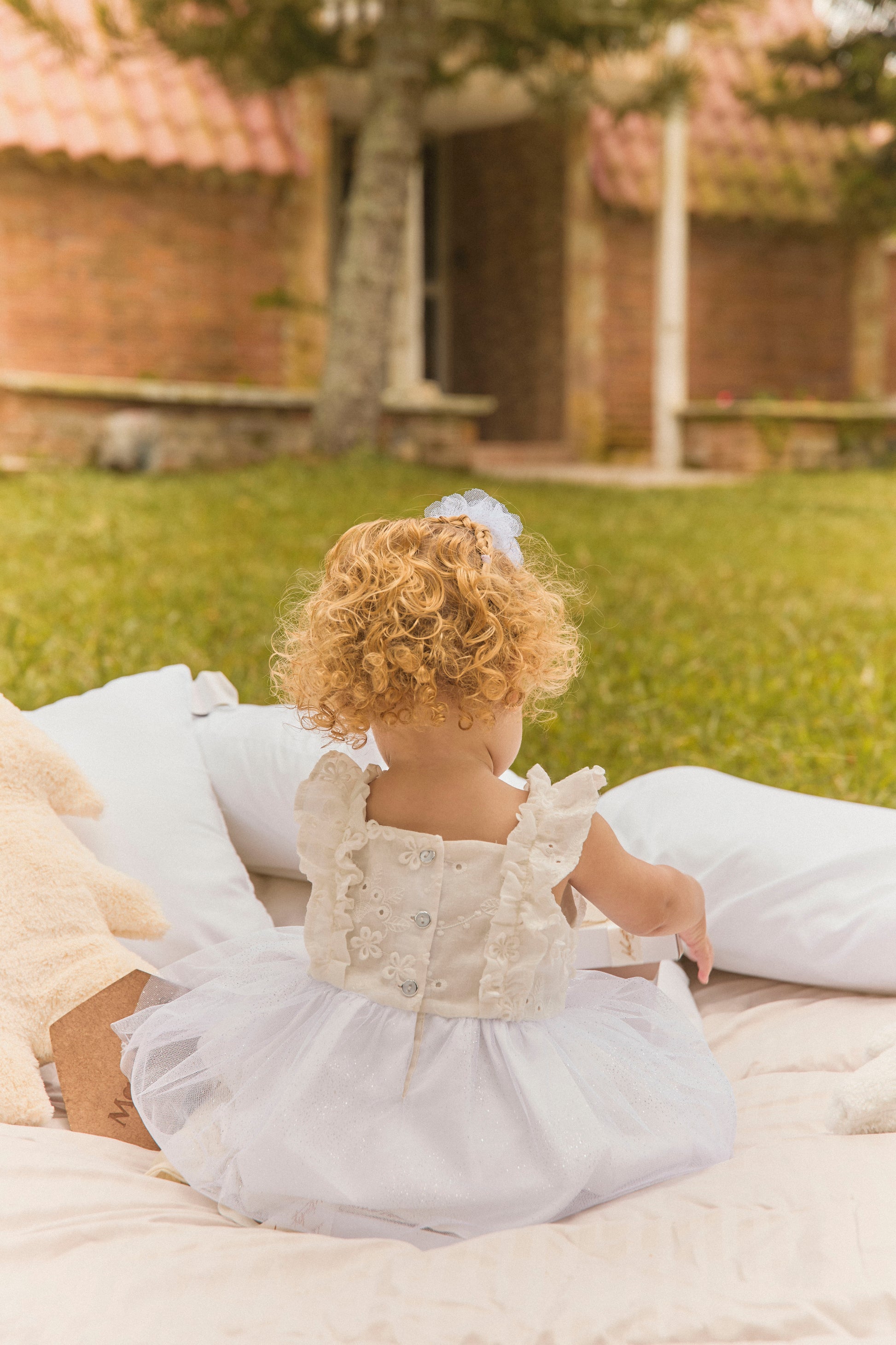 Vestido delicado y encantador que captura la magia de la nieve. Confeccionado en blanco puro, combina un body cómodo con tiritas fruncidas que crean un efecto elegante y femenino. El tul escarchado añade un toque de brillo y movimiento, perfecto para ocasiones especiales. Ideal para niñas que desean sentirse como una princesa de invierno. Un diseño que mezcla comodidad y estilo en cada detalle.