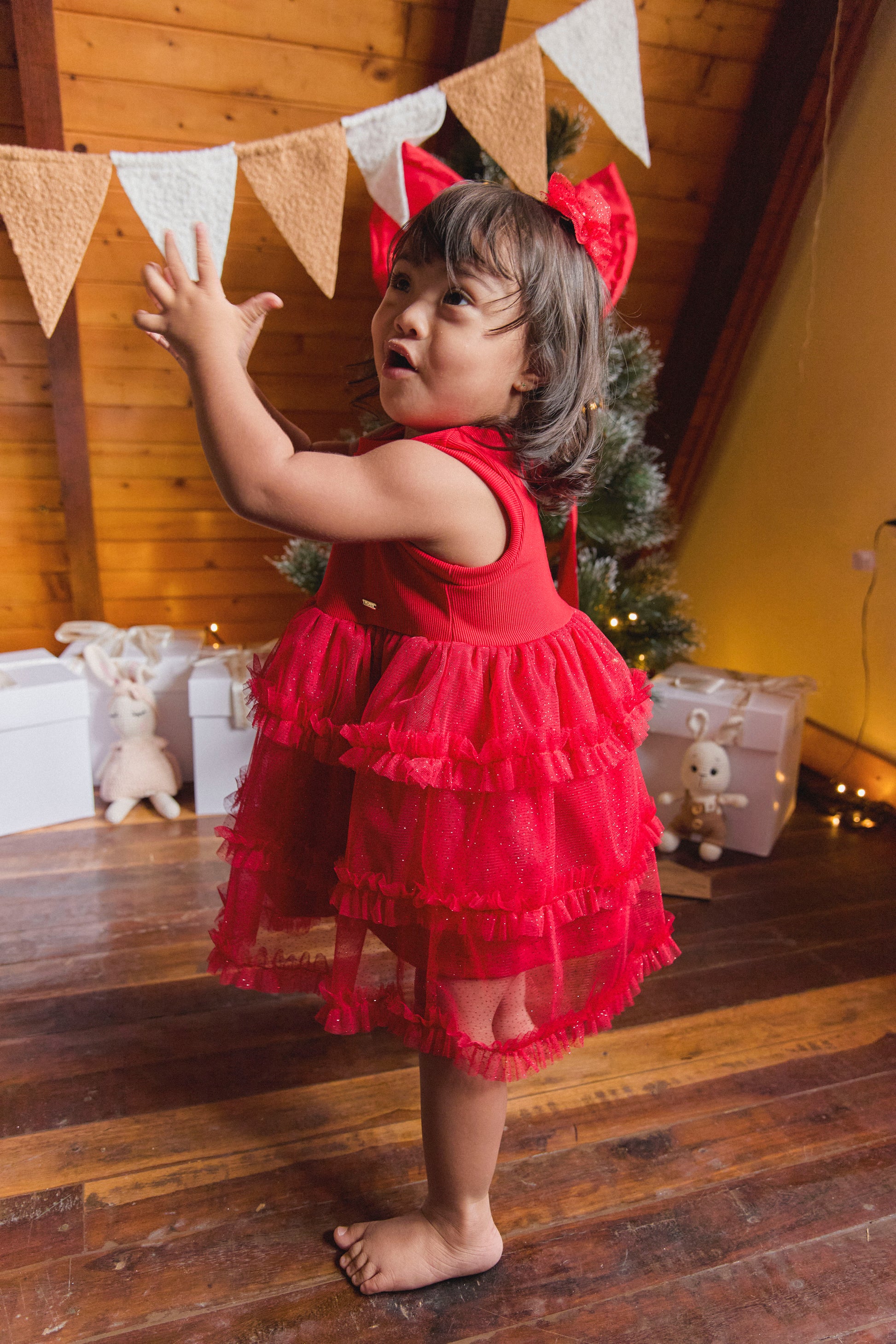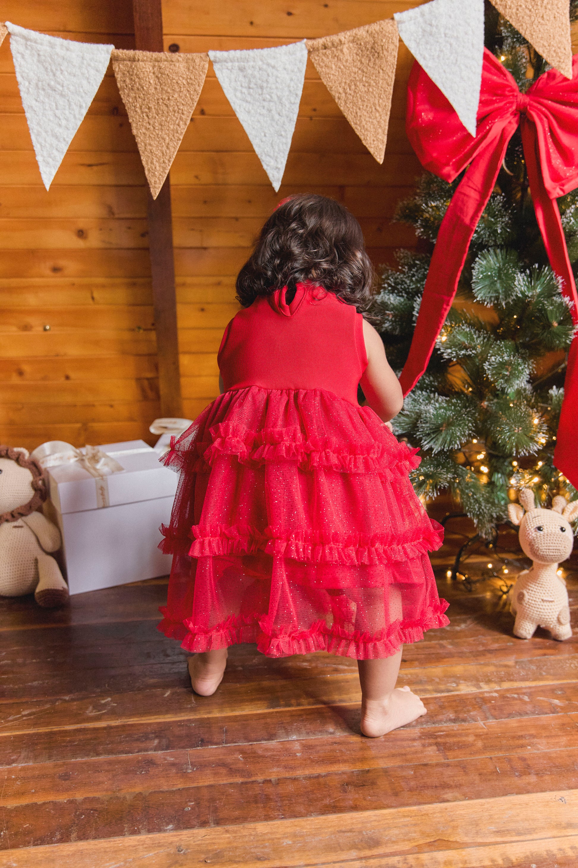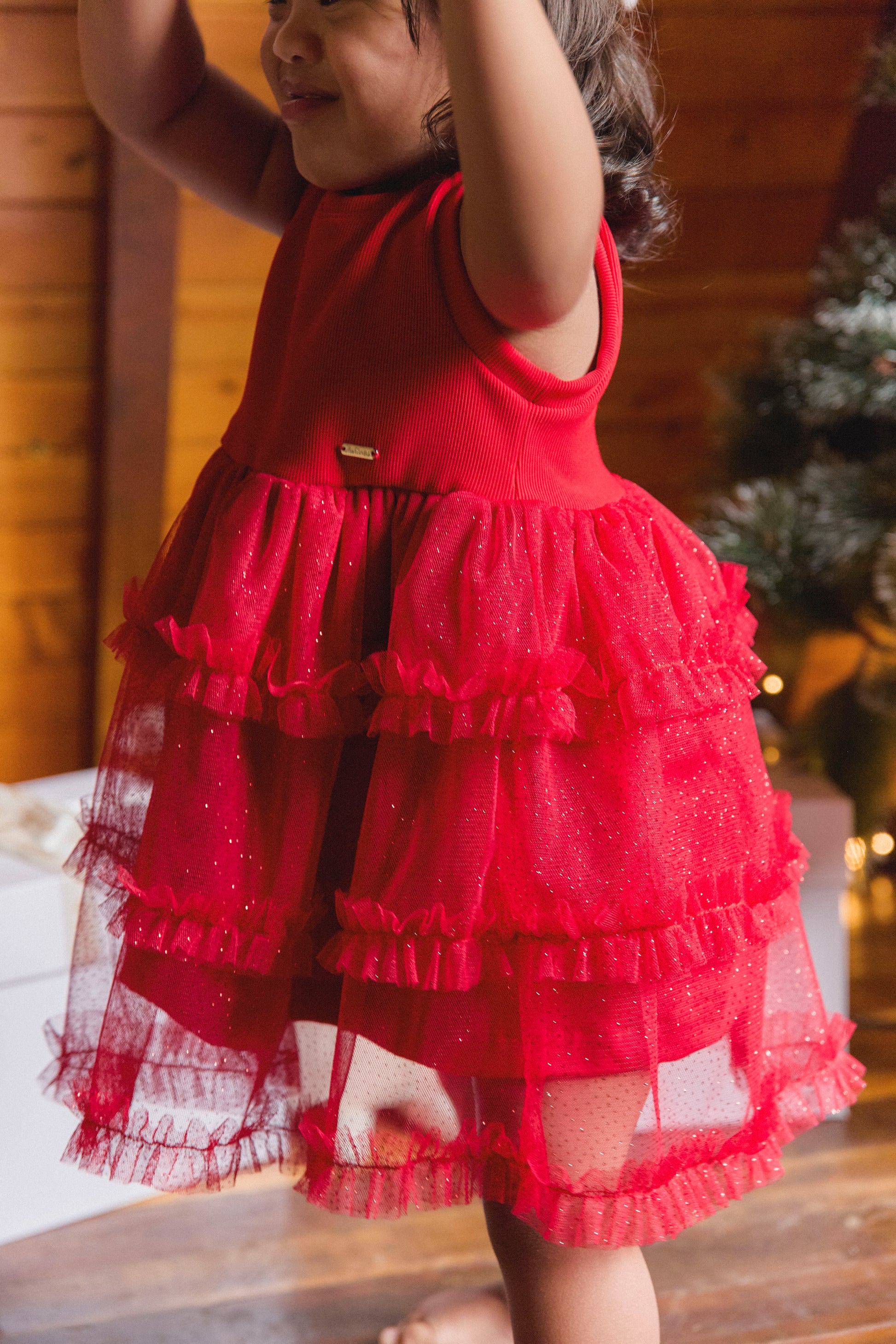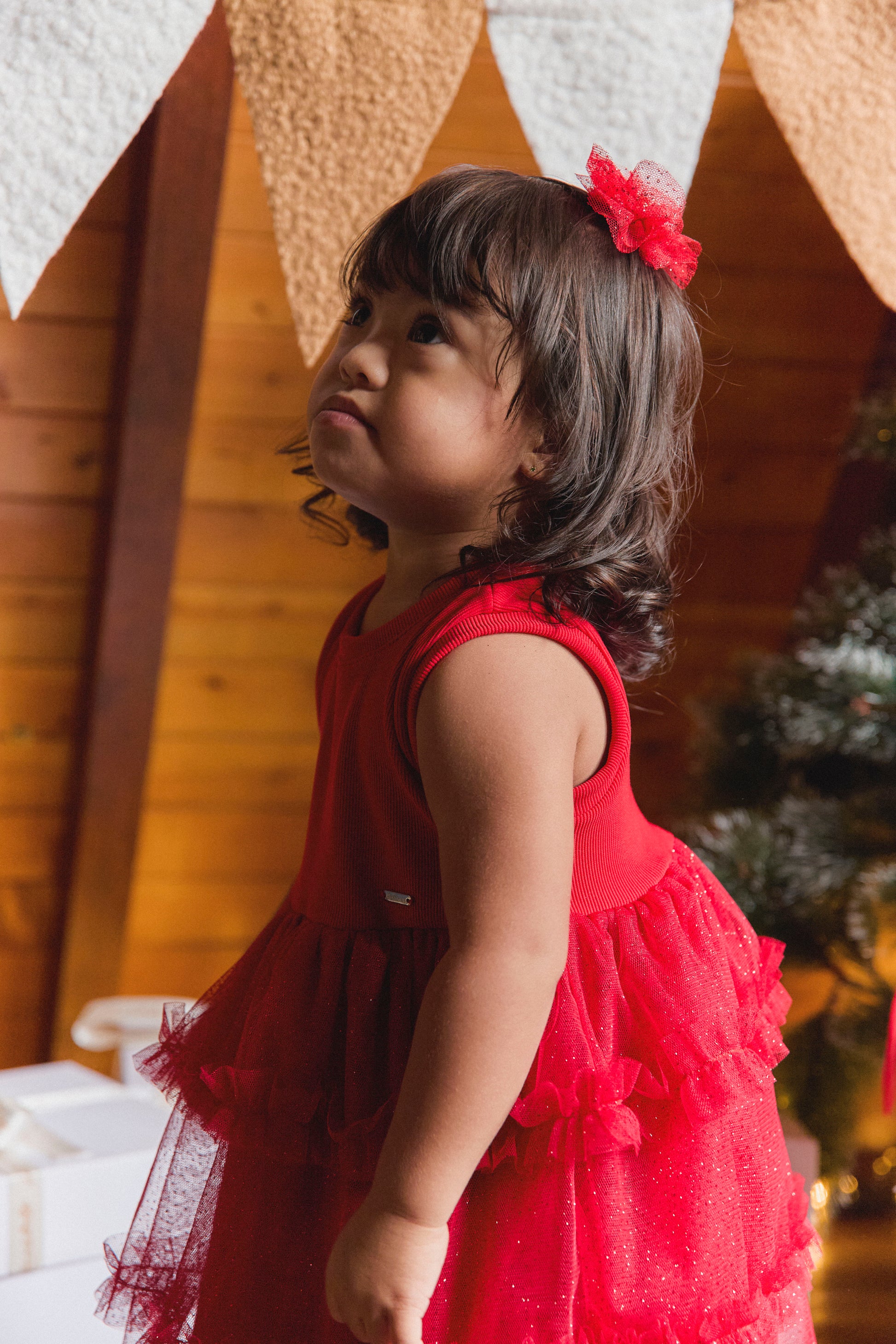 Vestido Rubí diseñado con ternura en tela rib suave que abraza cómodamente. Las delicadas golitas de tul con glitter crean un volumen romántico y etéreo, mientras que los destellos dispersos añaden un brillo sutil y cautivador. Ligero y versátil, es la opción ideal para que tu pequeña se sienta especial en cada ocasión, radiando elegancia y encanto con cada movimiento.